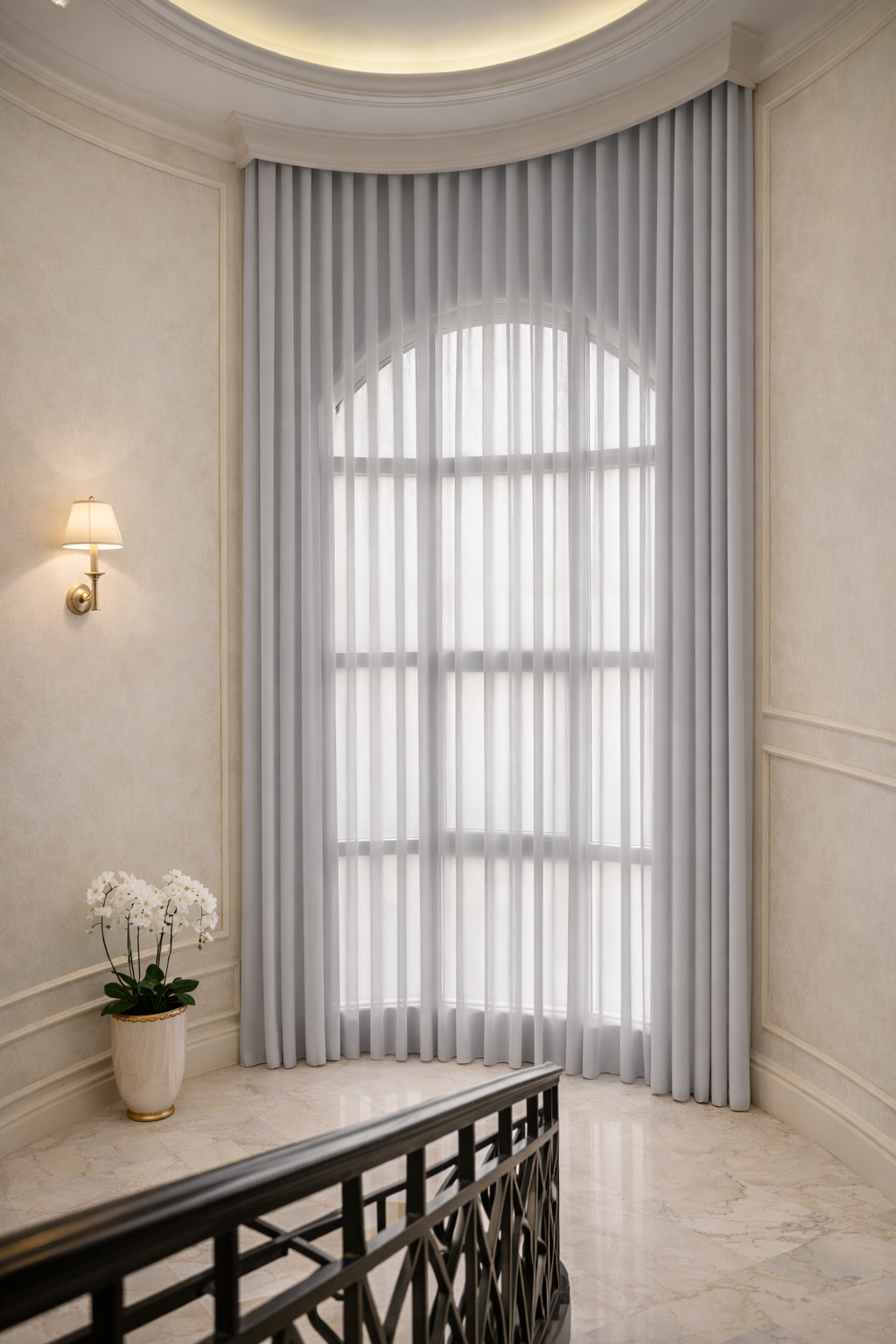 Enhance the beauty of architectural windows with the Arched Grace Sheer Curtain Set. Specially designed for arched frames, these curtains follow the natural curve seamlessly, creating a graceful and luxurious visual flow.