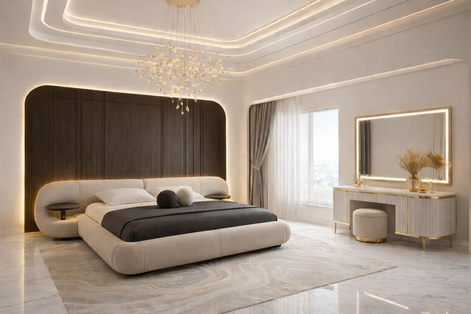 The Luna Luxe Bedroom Set is crafted for those who want a coordinated and refined bedroom space. At the center is the signature upholstered platform bed, designed with smooth curves, soft padding, and a low-profile structure that adds a contemporary touch.