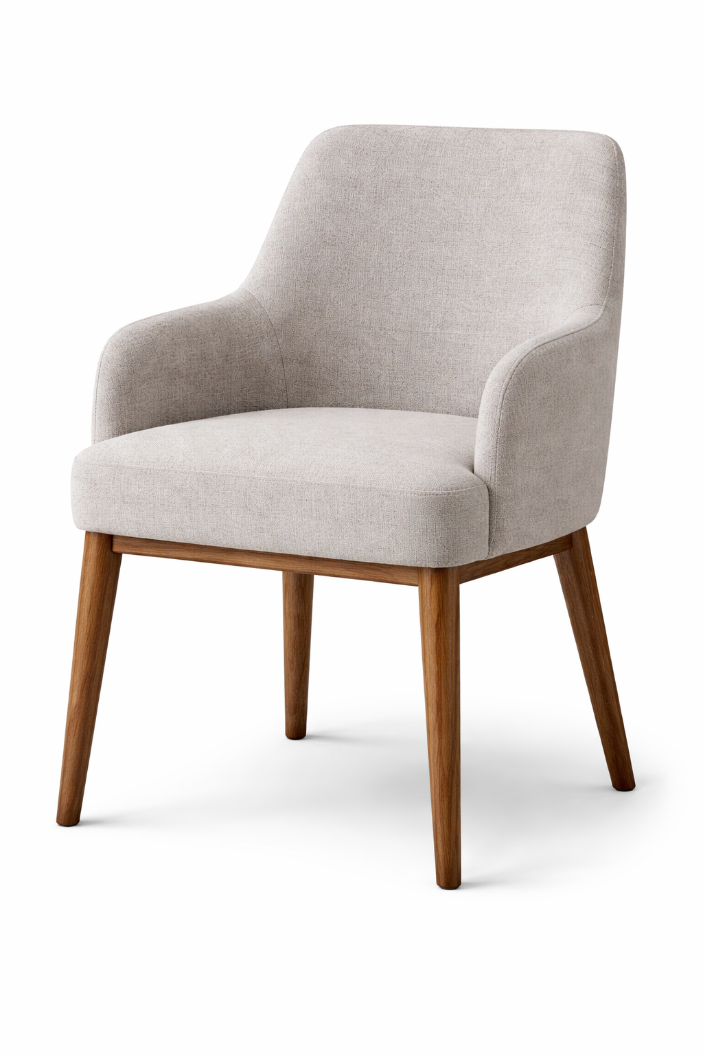 Supported by solid wooden legs with a natural finish, the chair adds warmth and durability while maintaining a minimalist aesthetic. Its neutral fabric tone makes it easy to blend with a variety of interior styles, including modern, Scandinavian, and contemporary dining setups.