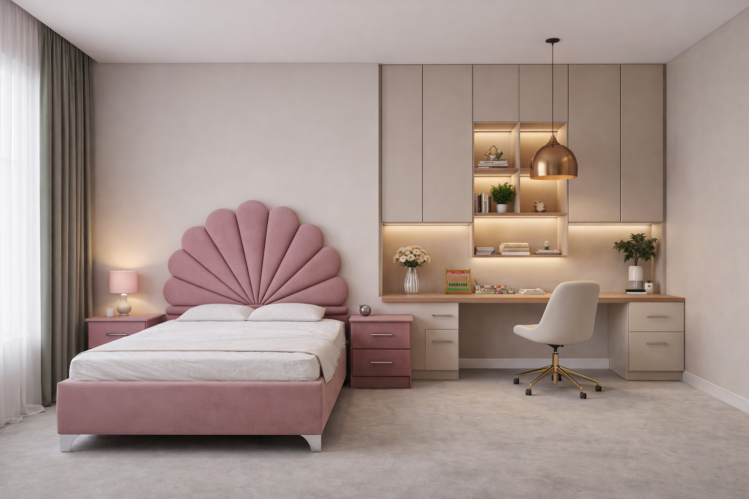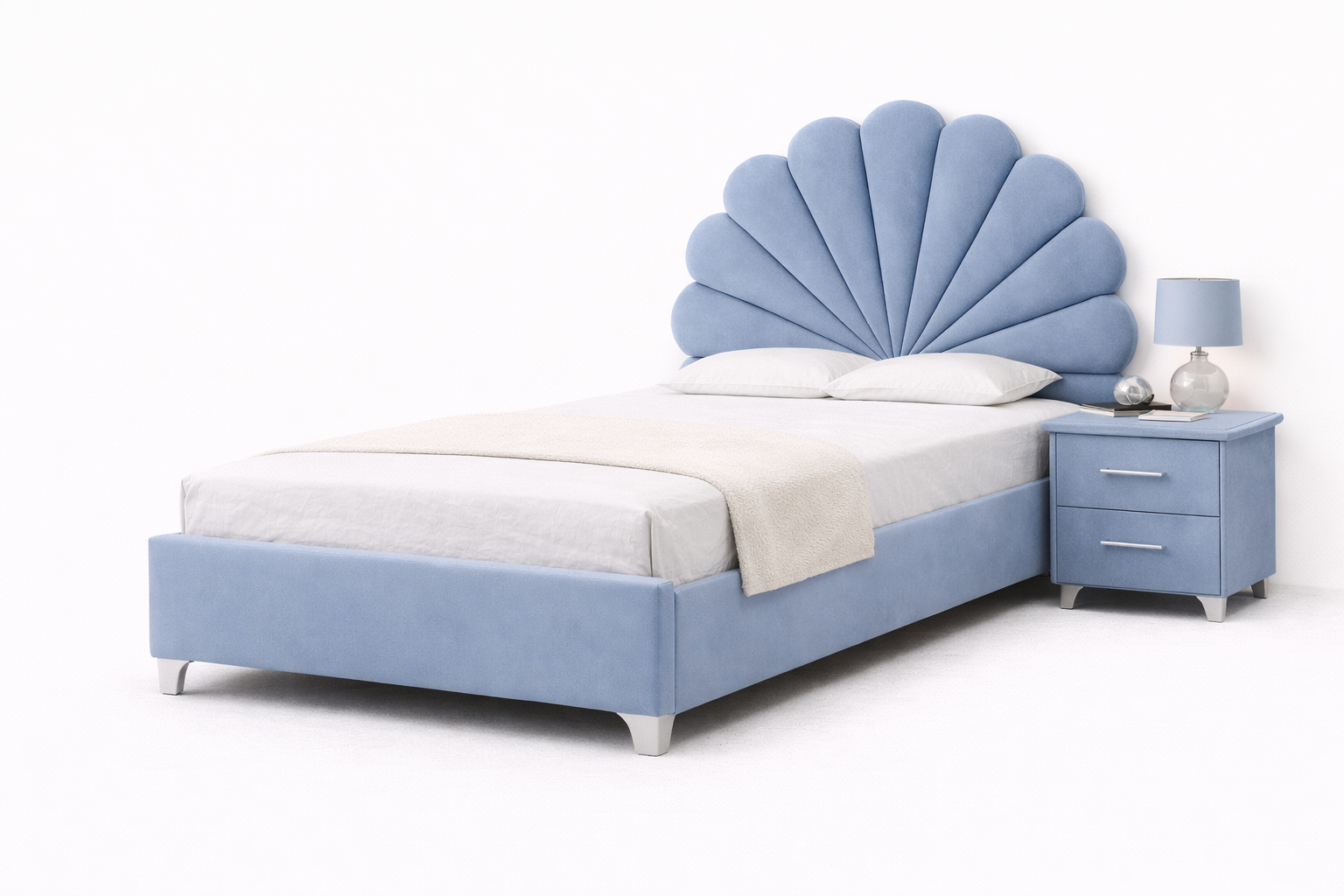 The Shella Comfort Kids Bed is designed to bring charm, comfort, and functionality into your child’s bedroom. Its beautifully crafted shell-shaped upholstered headboard adds a fun yet elegant touch that kids love, while the padded surface provides extra comfort and safety.