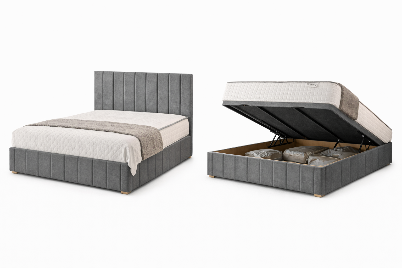 The UrbanLift Grey Upholstered Storage Bed is designed for modern homes where style meets functionality. Upholstered in premium grey fabric with clean vertical panel detailing, this bed adds a contemporary and elegant touch to any bedroom.