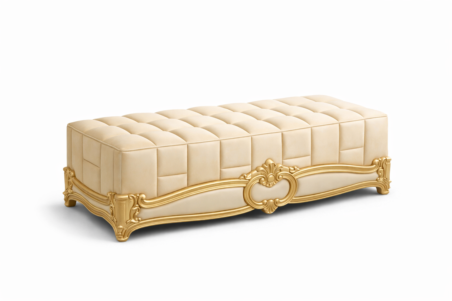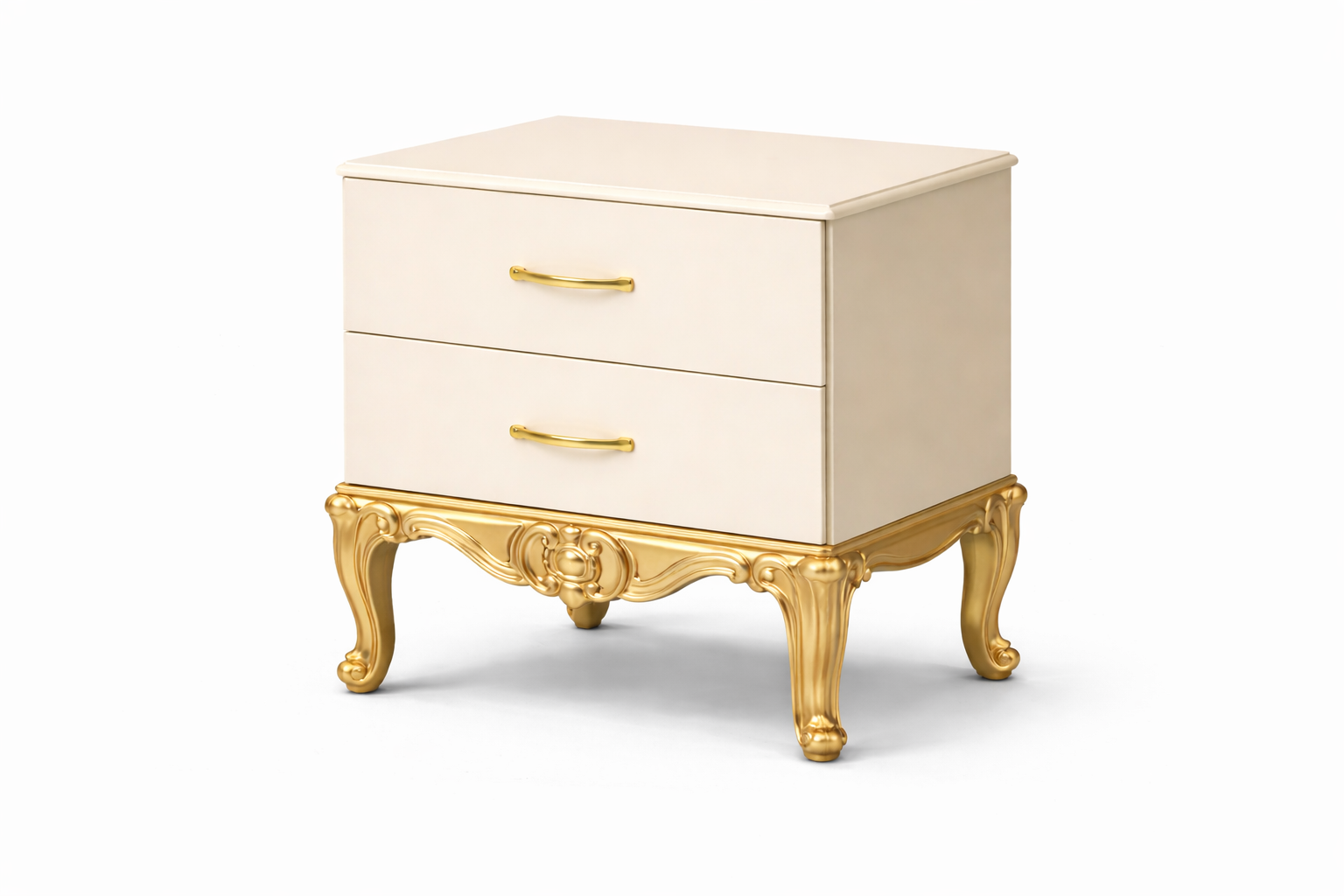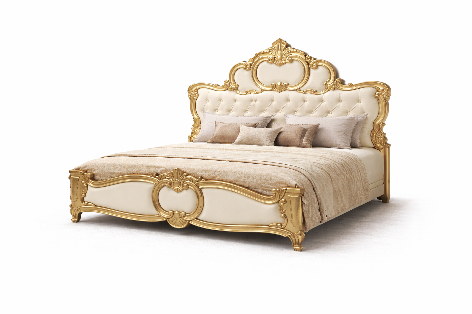 The Softwhite Gold Luxury Bed is designed to bring timeless elegance into your bedroom. Crafted with a premium softwhite finish and highlighted by rich gold accents, this bed features a beautifully carved headboard that adds a royal touch. Its sturdy construction ensures durability while maintaining a refined, luxurious appearance—perfect for premium interiors.